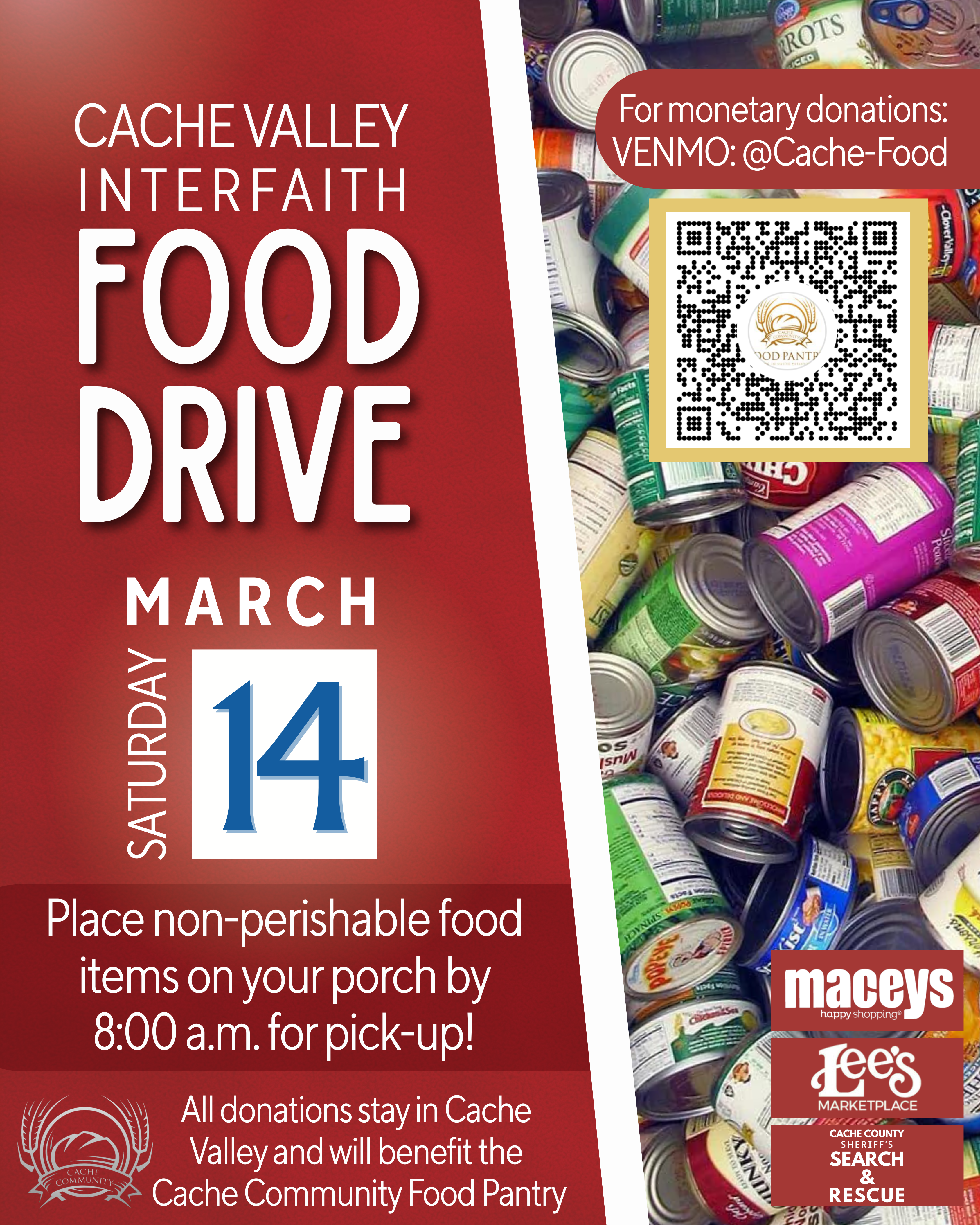 Valley-wide food drive on March 14th More info Here
